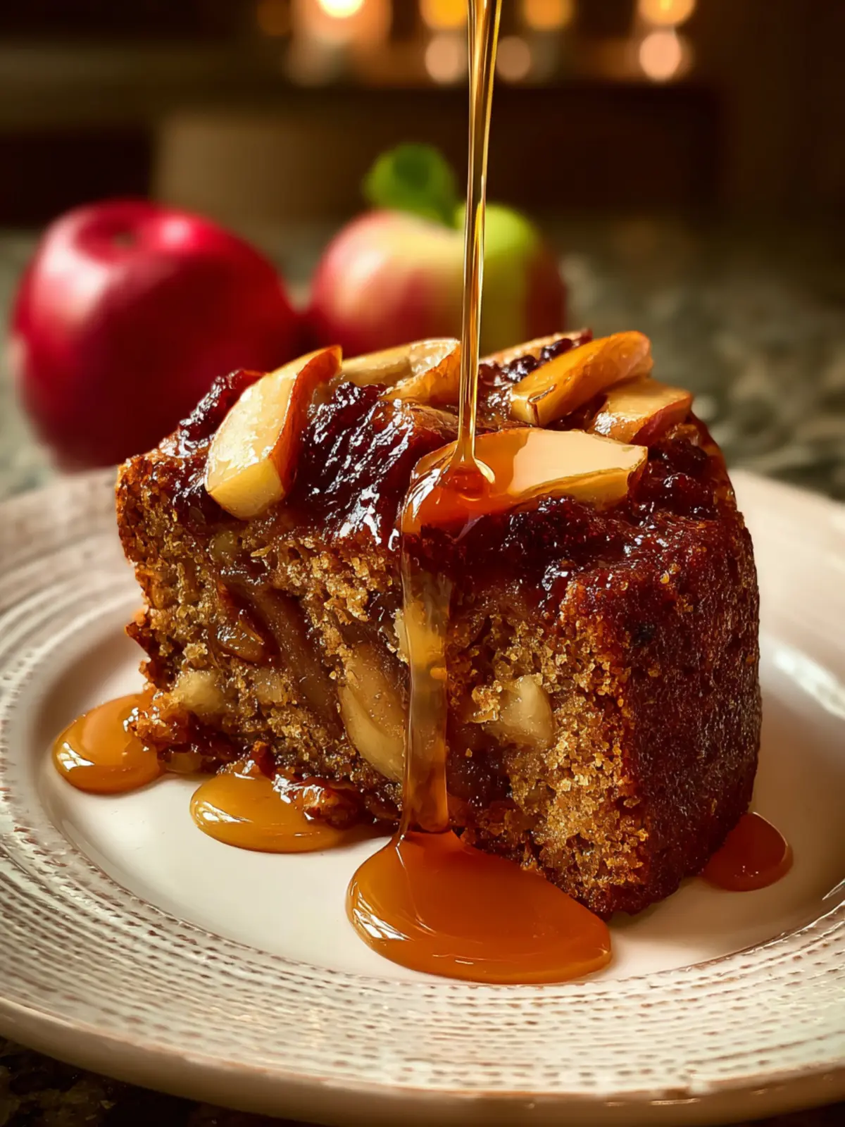 Apple Date Honey Spice Cake: Irresistibly Sweet with Hot Syrup