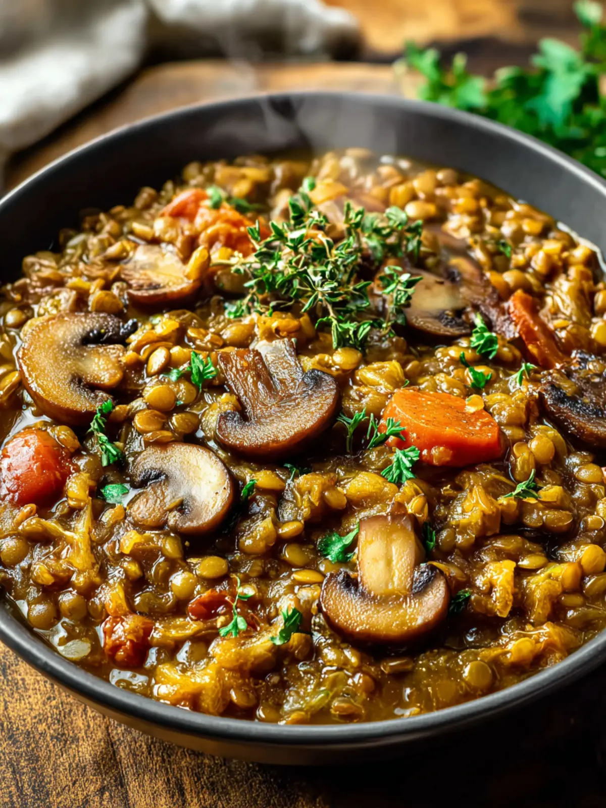 Comforting French Lentil Rice Mushroom Stew Recipe First Image