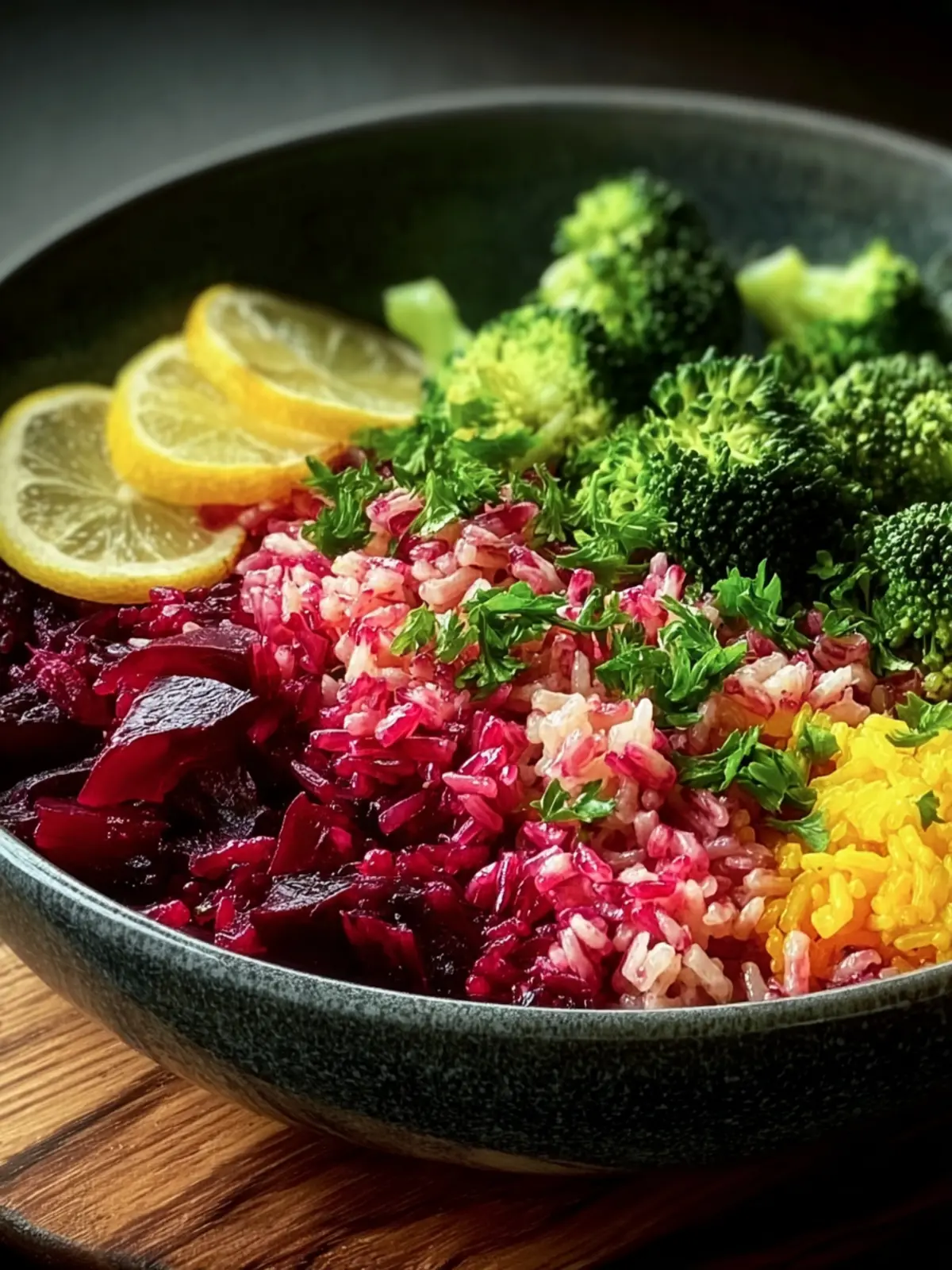 Introduction to Delicious Beet & Broccoli Rice Bowl with Lemon Dressing
