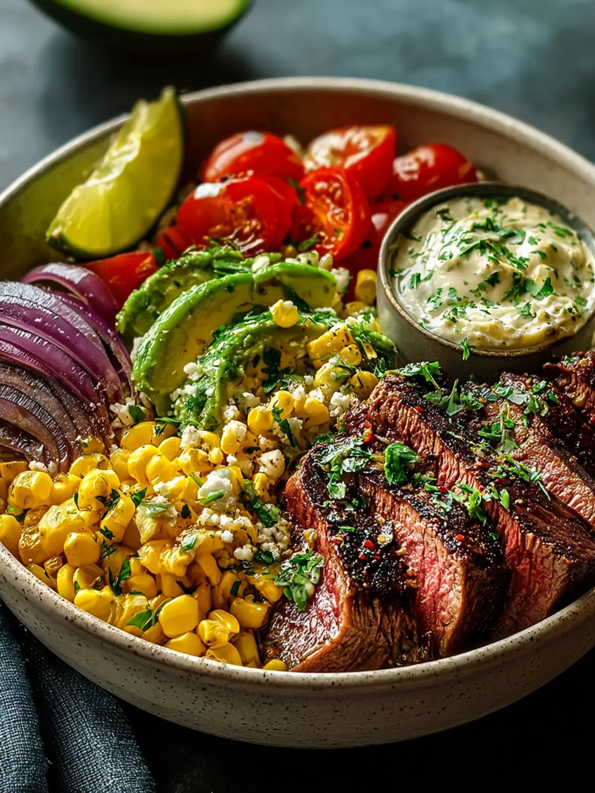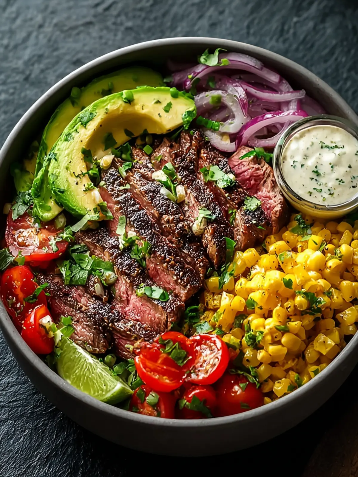 Nutritional Powerhouse: Packed with protein from the steak, healthy fats from the avocado, and fiber from the corn, this bowl offers a balanced meal that satisfies hunger without sacrificing health.