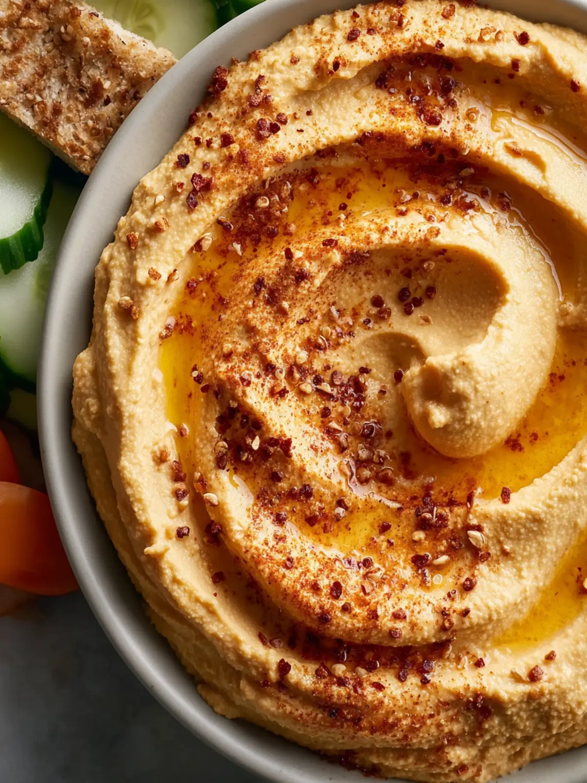 A creamy and delicious chickpea hummus perfect for dipping or spreading.