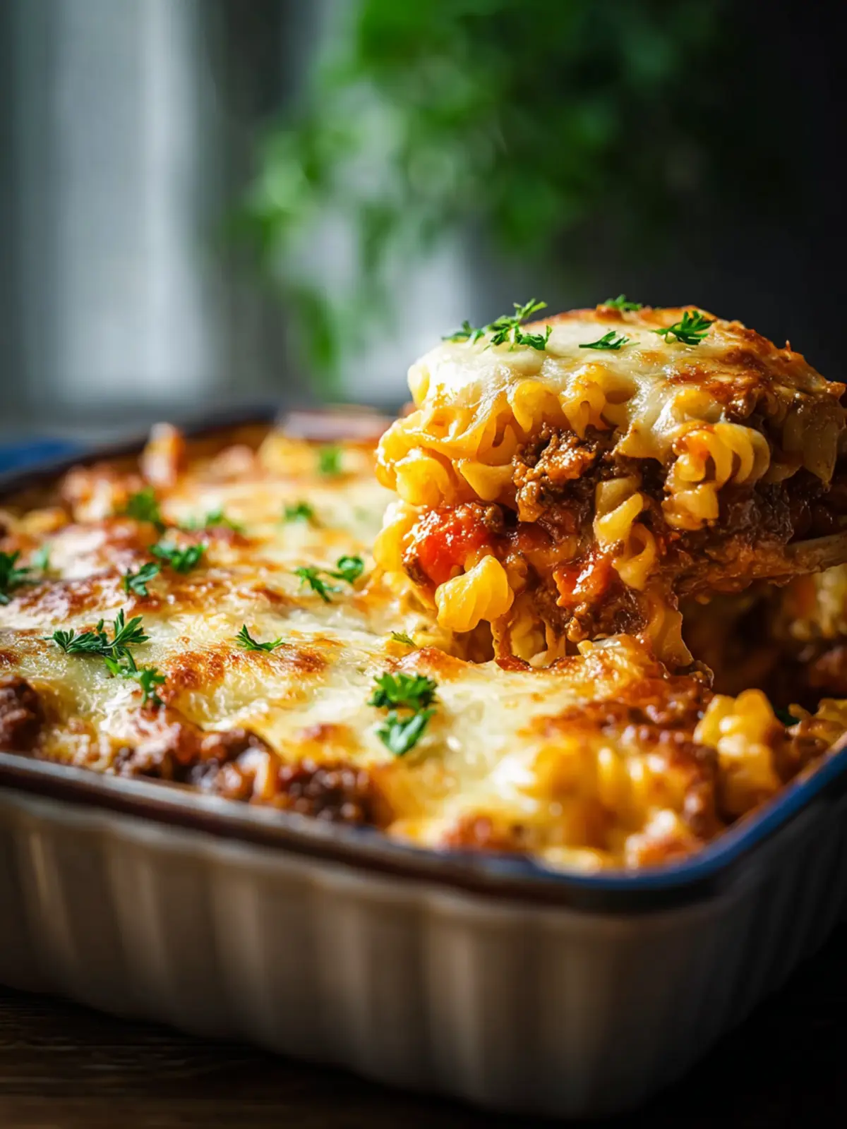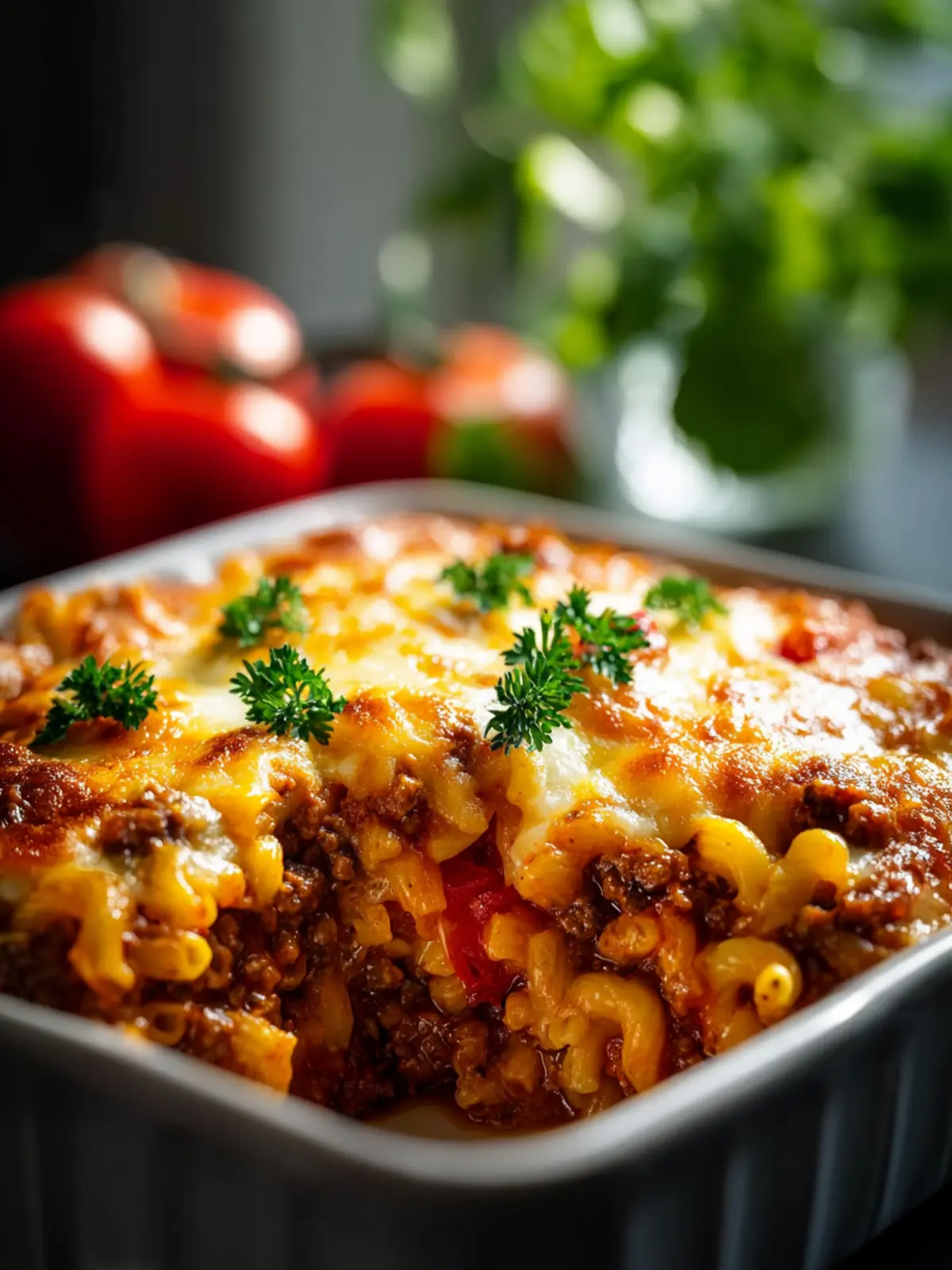 9. Let the casserole rest for 5-10 minutes before serving. Garnish with fresh chopped parsley if desired.