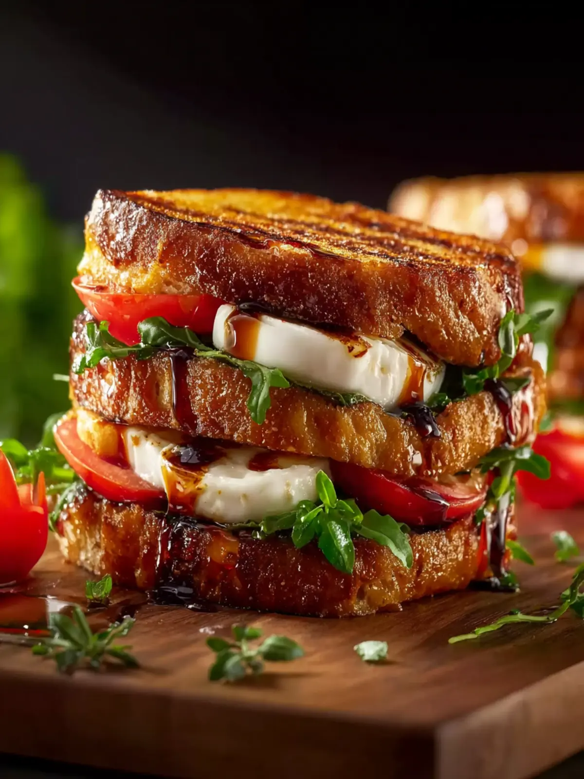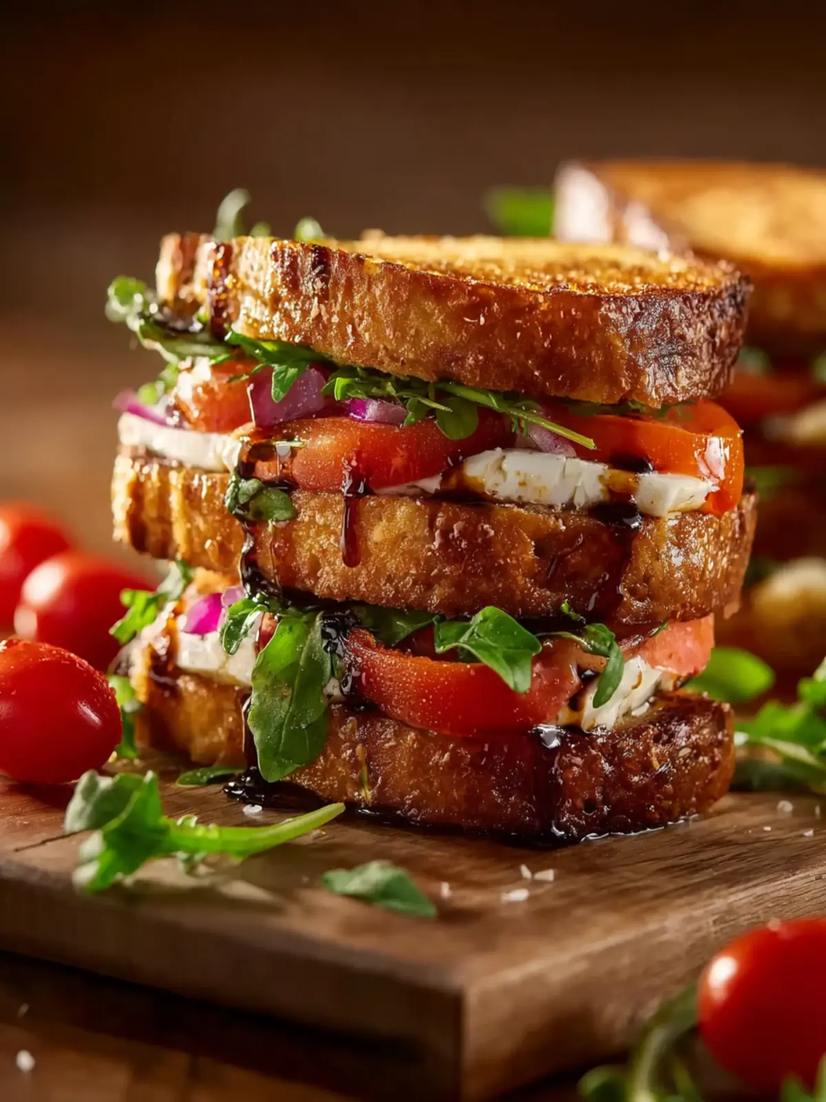 - Slice in half and serve immediately. The warm balsamic aroma, melted cheese, and crisp edges make this sandwich irresistible.