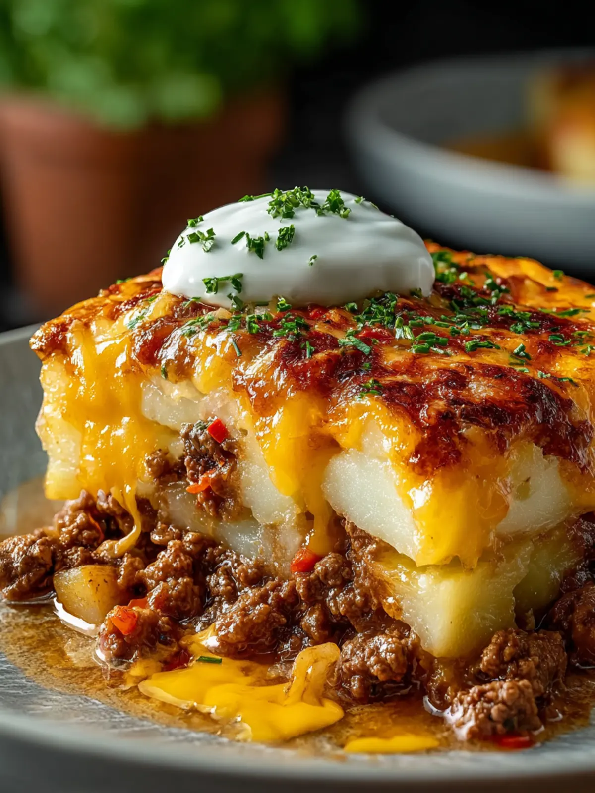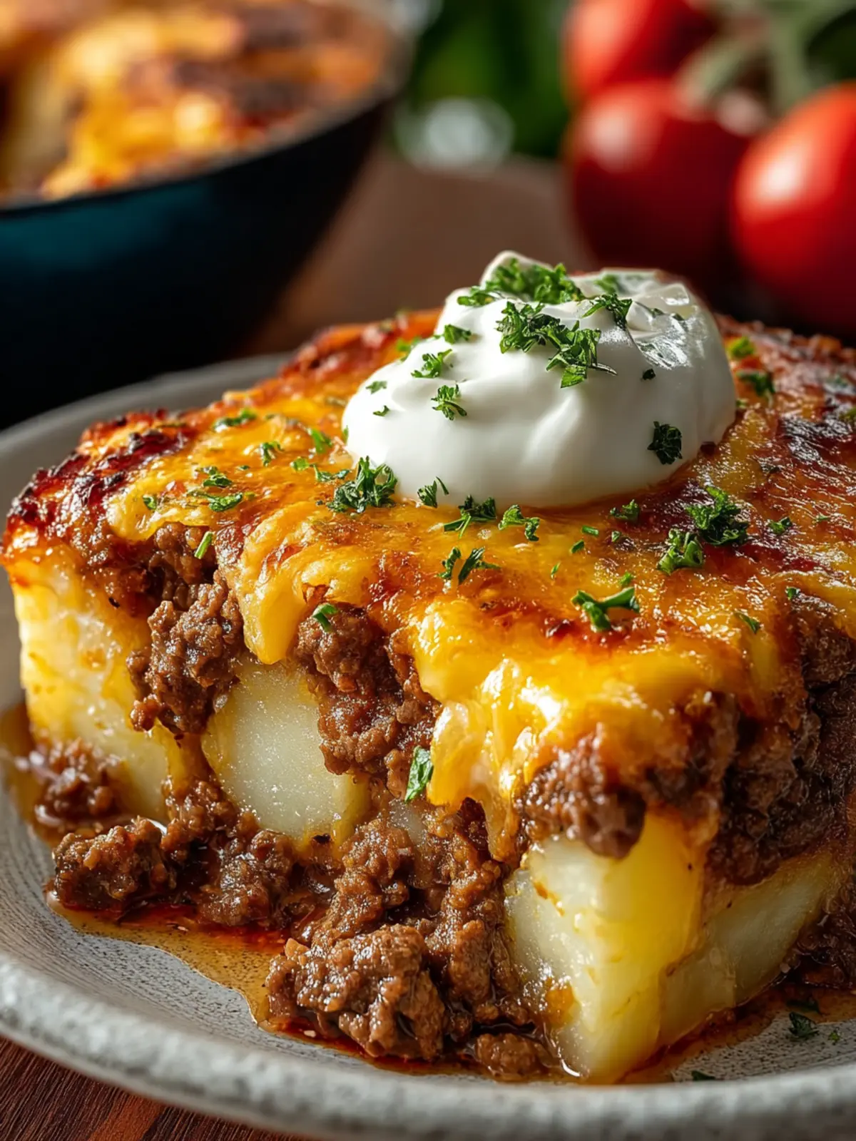 This Cheesy Beef Potato Casserole is a hearty and delicious dish perfect for any family dinner.