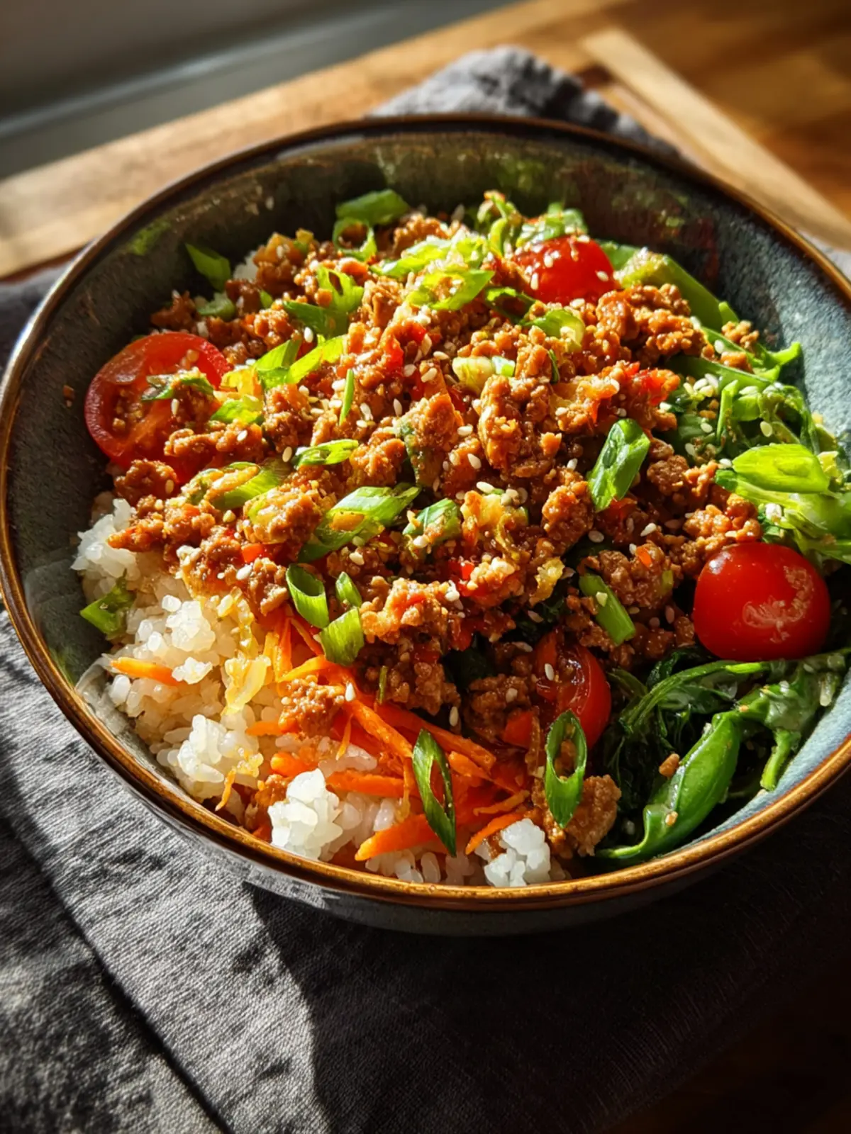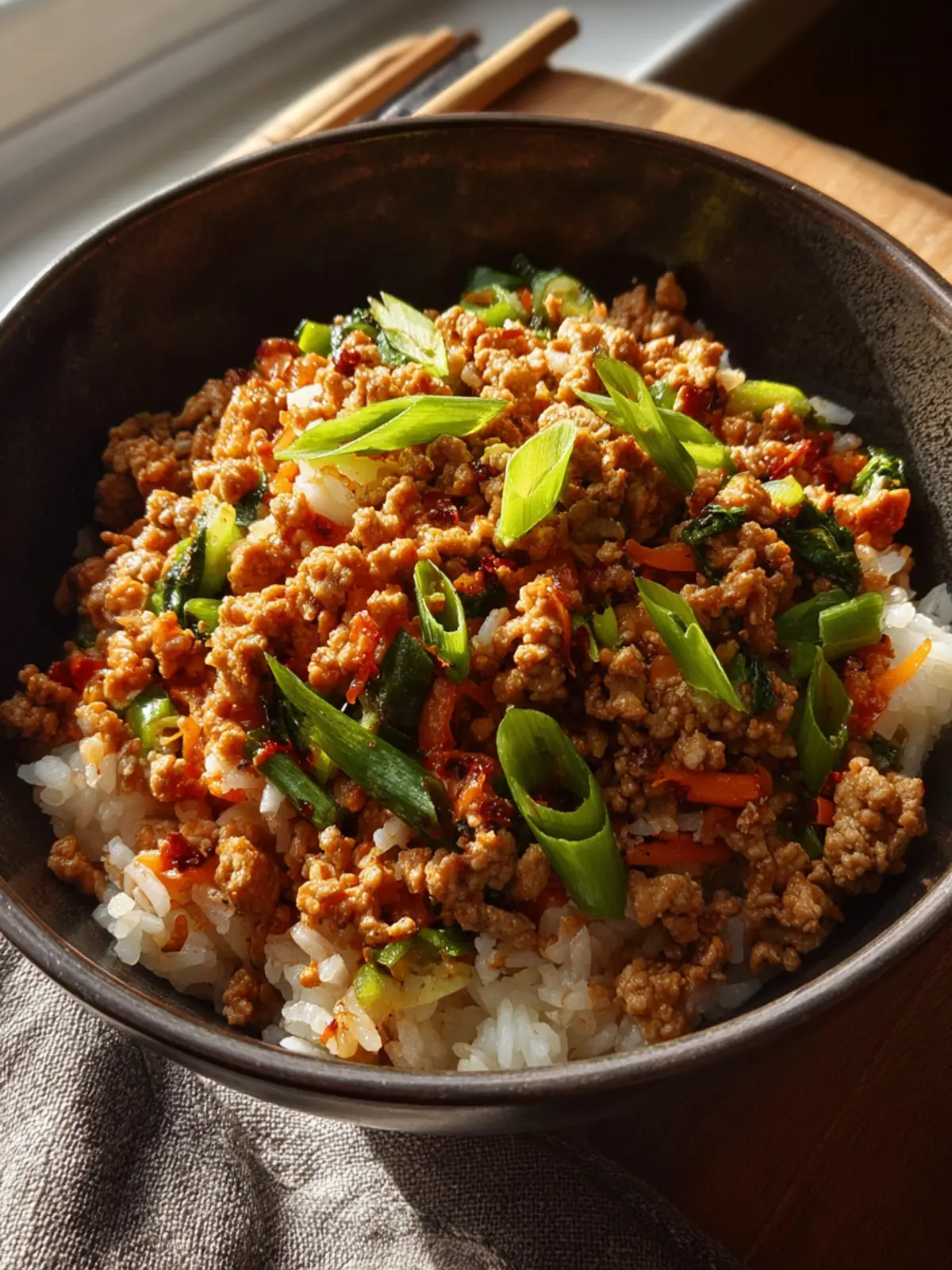 Green Onions: For a fresh finish, chopped green onions bring a mild onion flavor and a pop of color. They make each scoop of your ground turkey teriyaki rice bowl feel gourmet!