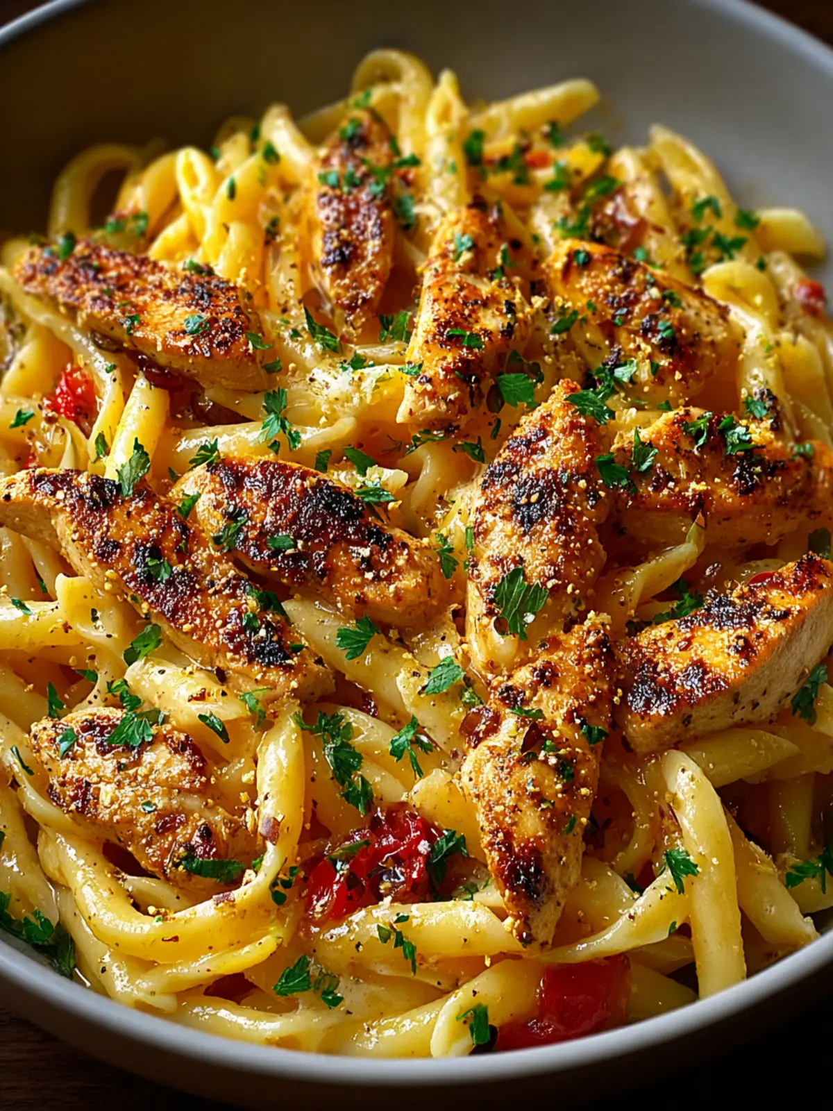 - Searing: Sear the chicken in a hot pan for that golden crust. This locks in moisture and adds a delightful contrast to the pasta.