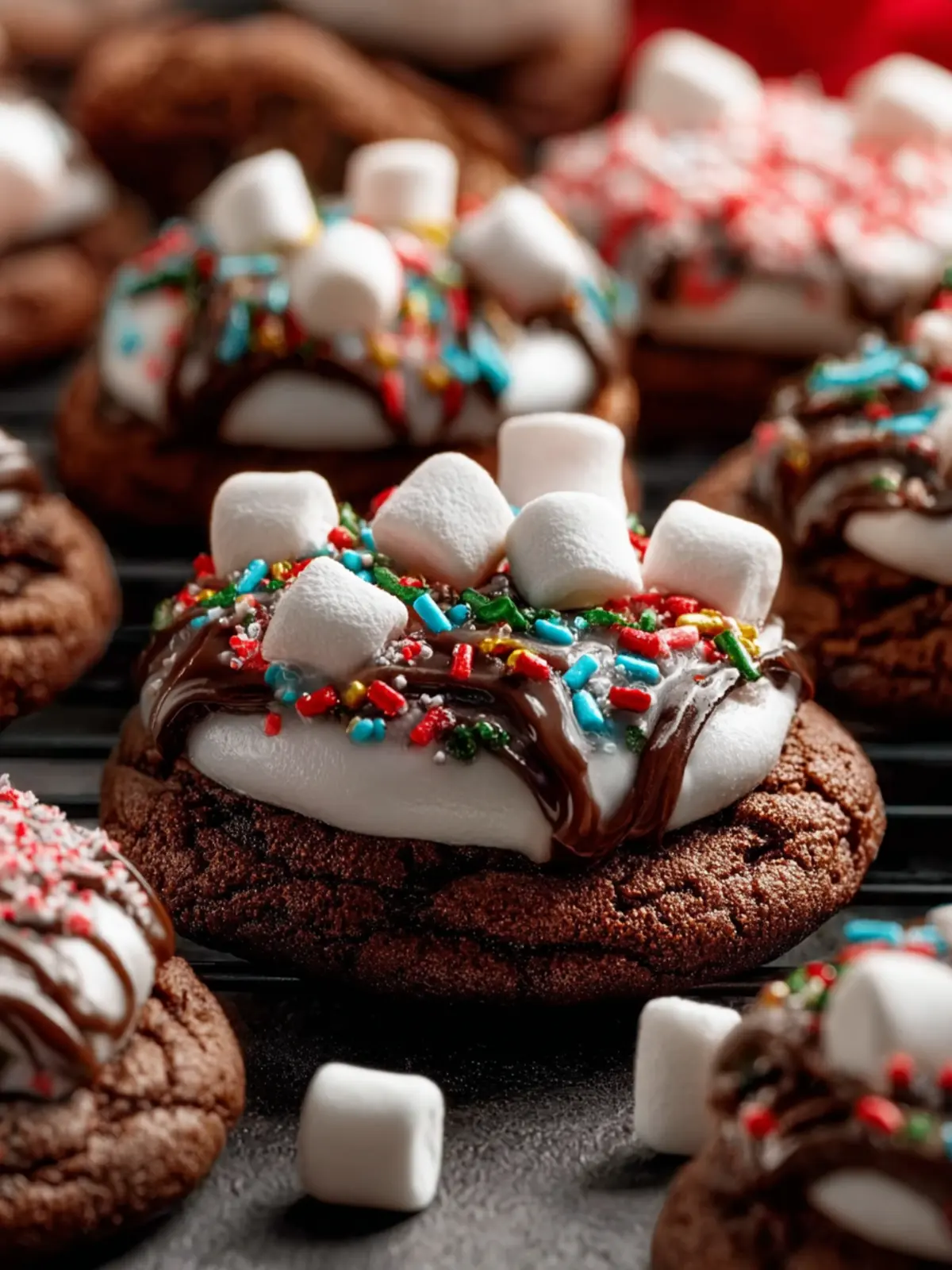 Add a festive flair by incorporating crushed peppermint candies into your dough. It brings a refreshing twist that beautifully complements the rich chocolate flavor of the cookies and pairs perfectly with the marshmallow frosting.