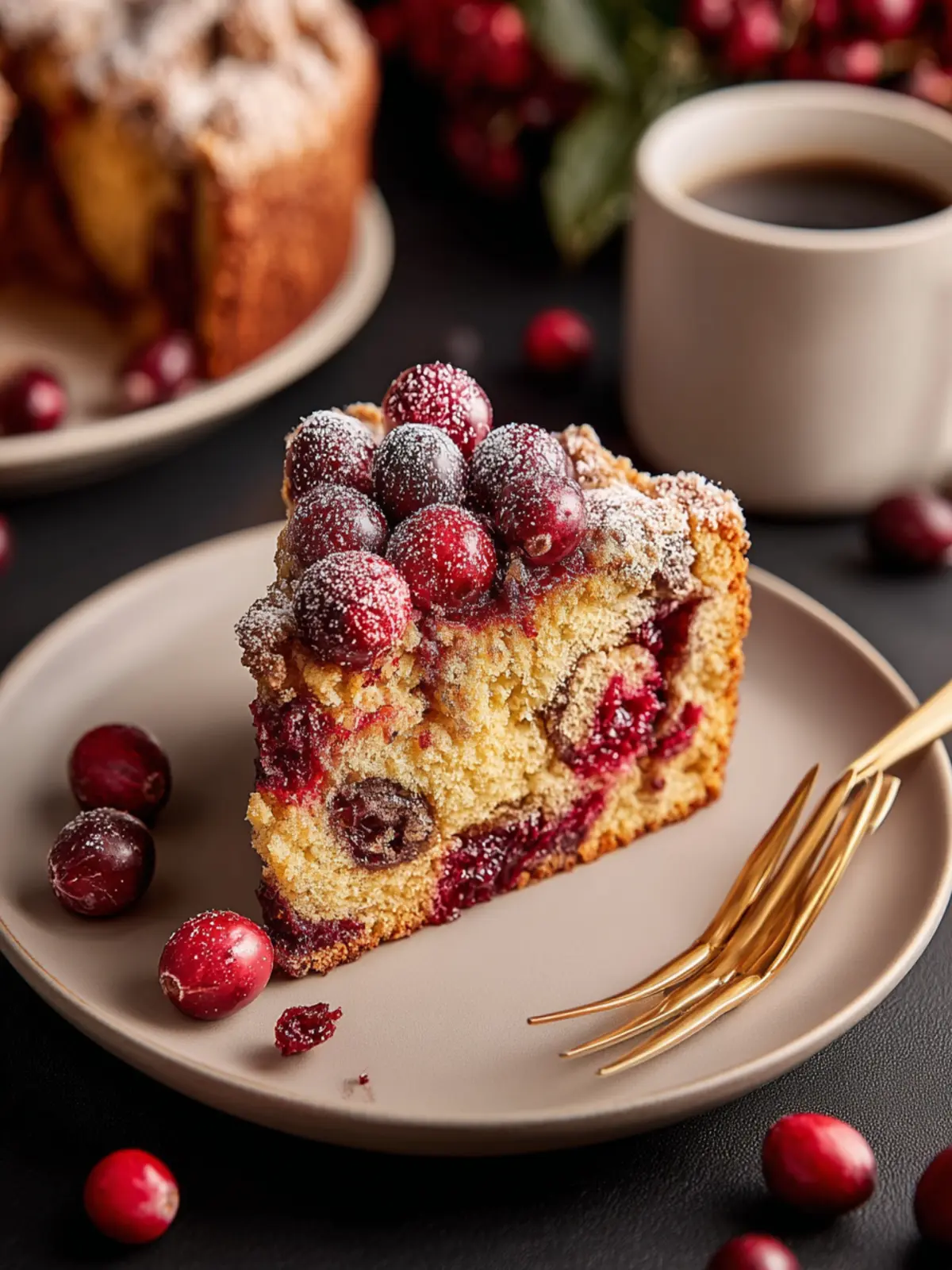 Flavorful and Comforting: The combination of tart cranberries and buttery cake not only awakens your taste buds but also invokes nostalgia for shared moments around the table. Each bite is reminiscent of home and warmth, making it the perfect companion for your coffee or tea.