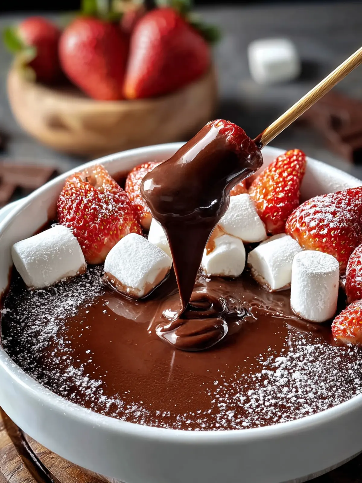 A delicious chocolate fondue perfect for dipping fresh fruits and marshmallows.