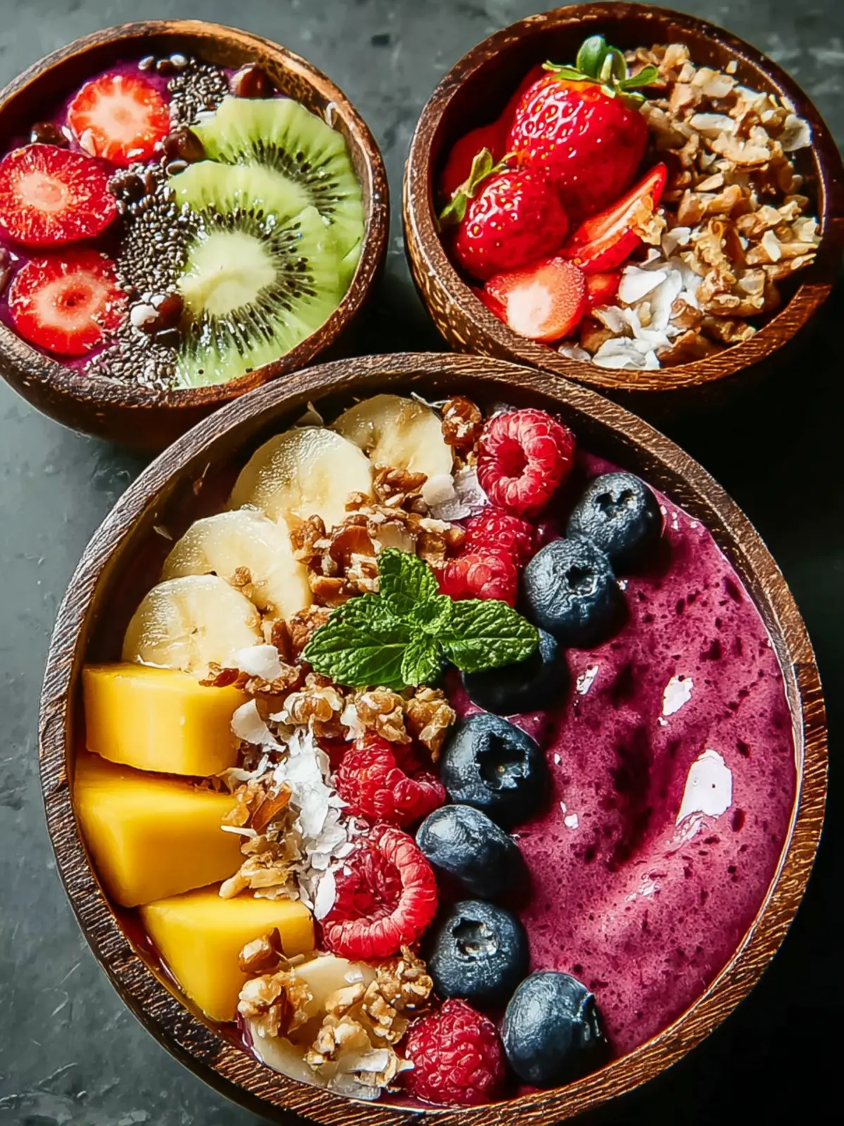 Imagine a sunshine-filled smoothie bowl bursting with flavors of mango, coconut, and pineapple. Add fresh shredded coconut and a sprinkling of chia seeds on top for added texture. This variation is perfect for those blissful summer mornings, transporting you straight to a tropical beach.