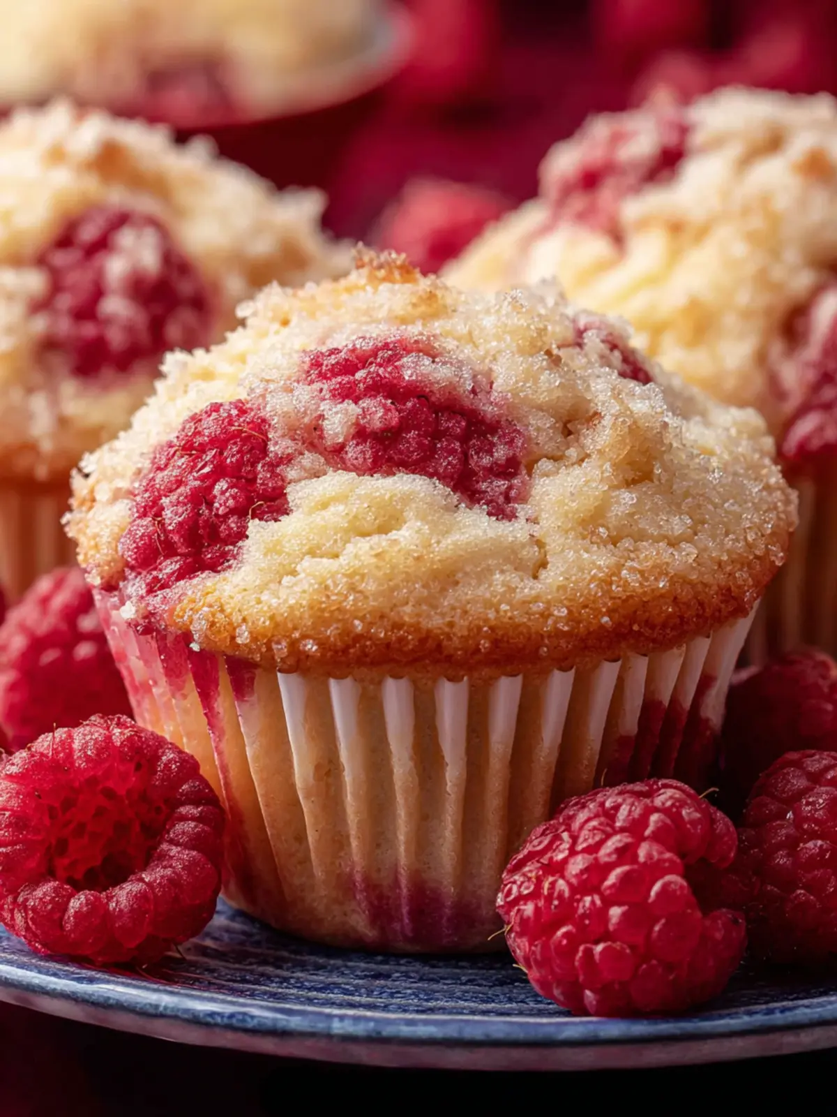 Delicious and fluffy raspberry muffins perfect for breakfast or a snack.