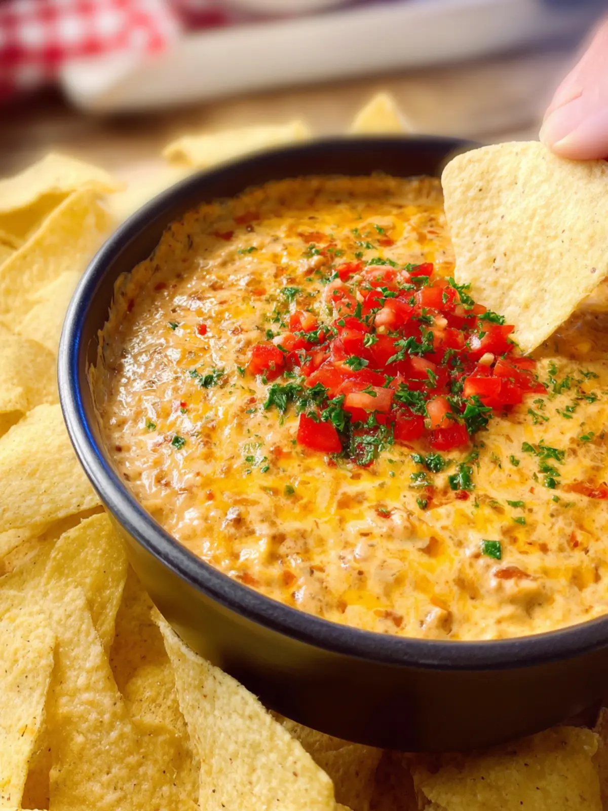 Versatility: The beauty of Rotel Dip is its adaptability. You can enjoy it with tortilla chips, fresh vegetables, or even as a melty topping for baked potatoes and nachos. The options are endless!