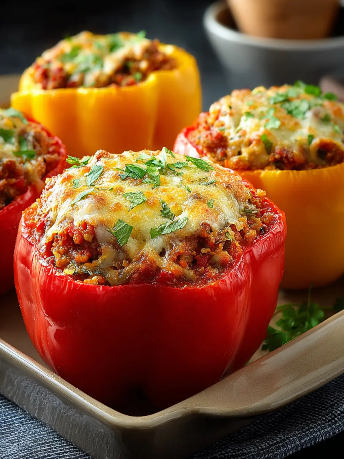 Stuffed bell peppers offer a delightful way to enjoy a colorful and nutritious meal. With their vibrant hues and savory filling, these peppers are not only visually appealing but also packed with flavor. Whether you opt for a classic ground meat blend or a vegetarian variety, the possibilities are endless. I encourage you to experiment with your own combinations of spices and fillings to make this dish uniquely yours. Trust me—once you take that first bite of your homemade stuffed bell peppers, you’ll be hooked. Give this recipe a try, and savor the satisfaction of creating something delicious!