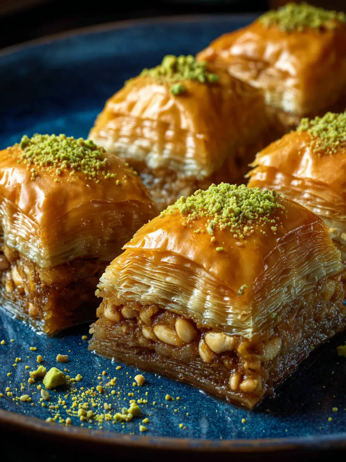 Nutty Filling: Traditionally, walnuts or pistachios are used, but the choice of nuts can vary, adding unique flavors to each batch. The combination of crisp pastry and rich nuts creates a satisfying crunch in every bite that’s incredibly addictive.