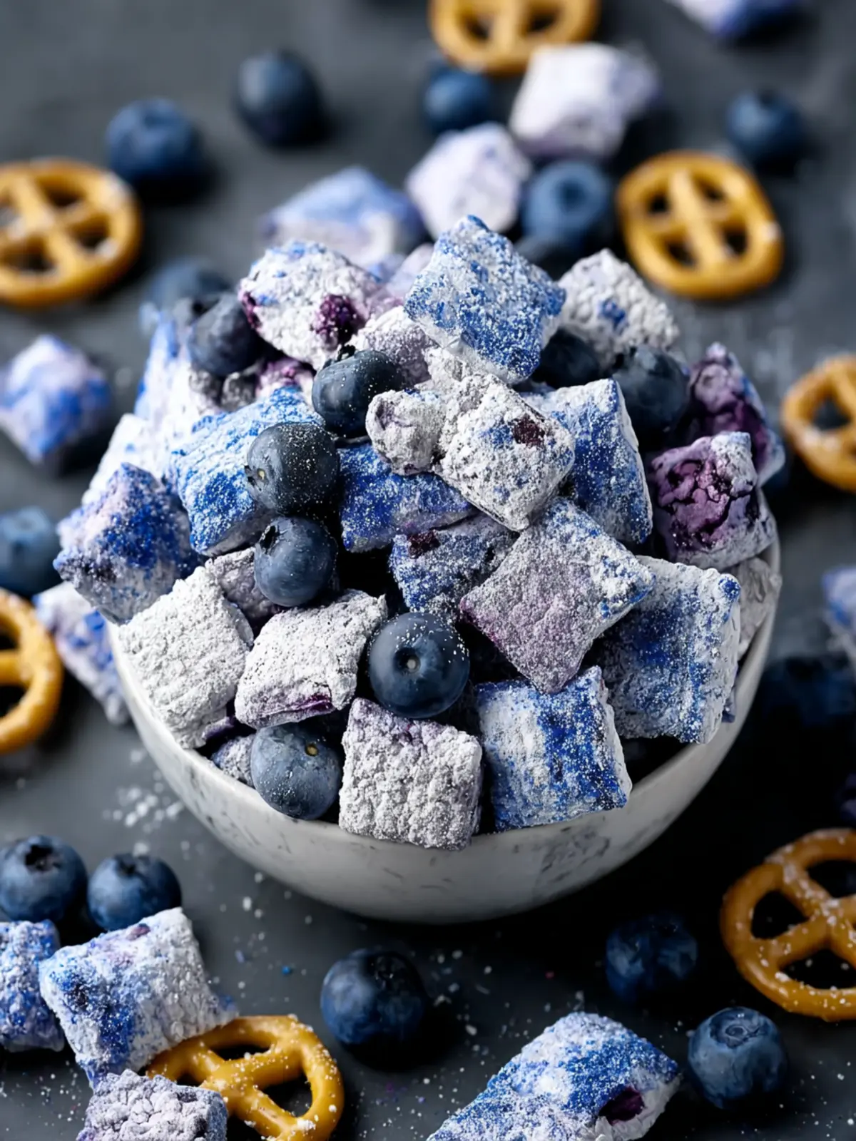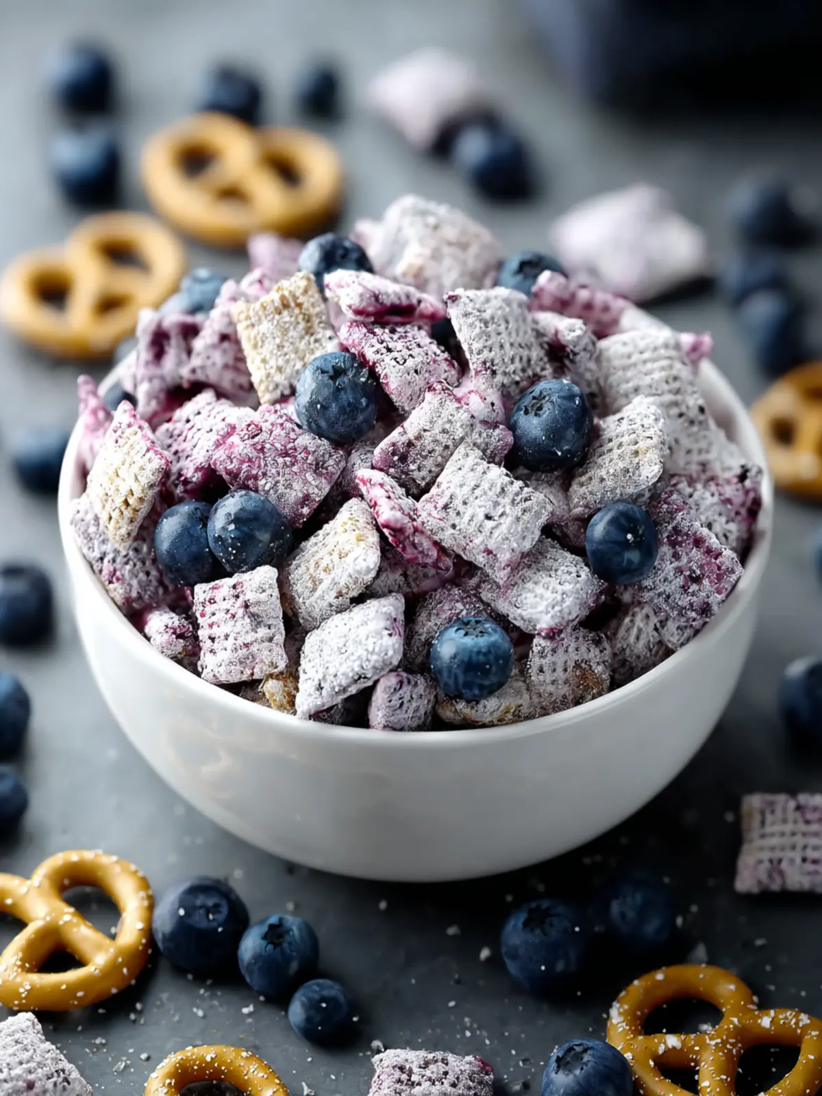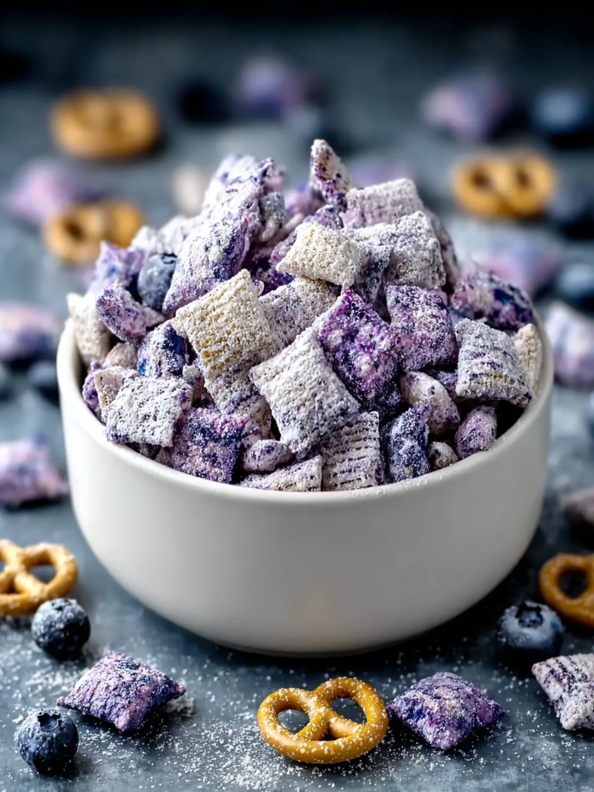 - Texture Wonder: Puppy chow is typically known for its delightful crunch, but this recipe takes it up a notch with the creaminess of the powdered sugar coating mingling with the crunch of the cereal and the juicy blueberries.